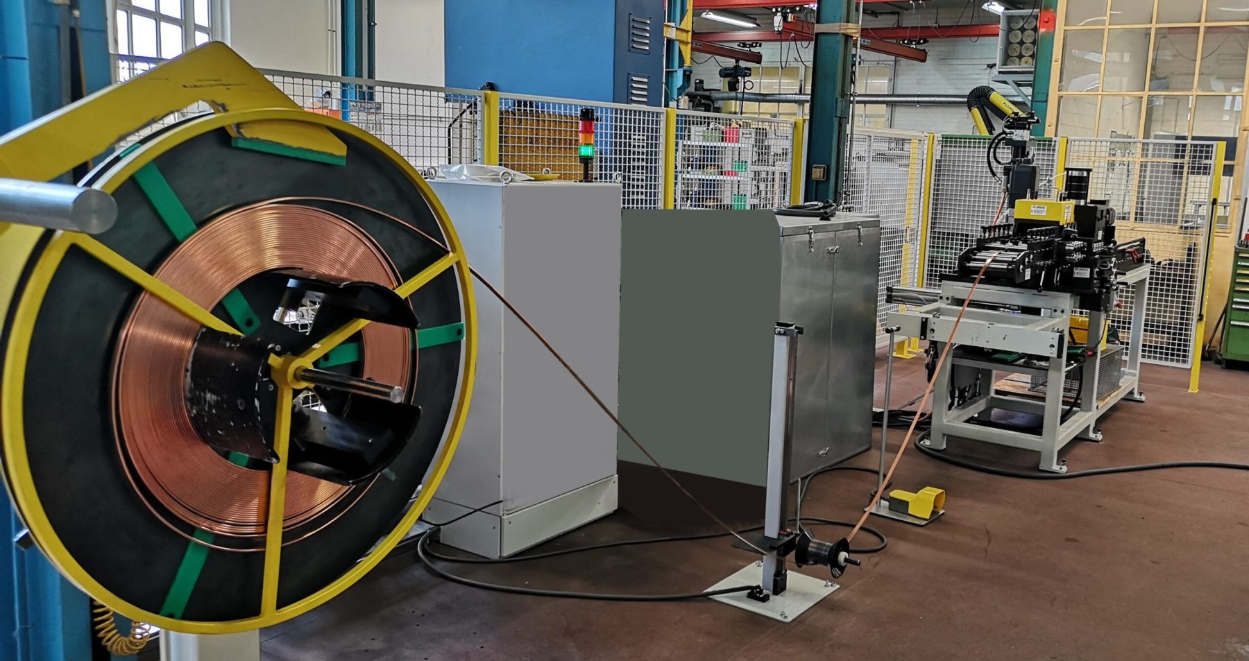 Verdrallen / Verdrehen / Spiralbiegen / Spiralbiegeanlage bezieht sich auf eine Methode, bei der Materialien verdreht oder verdrallt werden. Diese Technik findet Anwendung in verschiedenen Bereichen, etwa bei der Fertigung von Federdraht, Verbindungselementen und Rotorkernen für Servomotoren, um den Endprodukten immer eine gleich Biegeform zu geben.