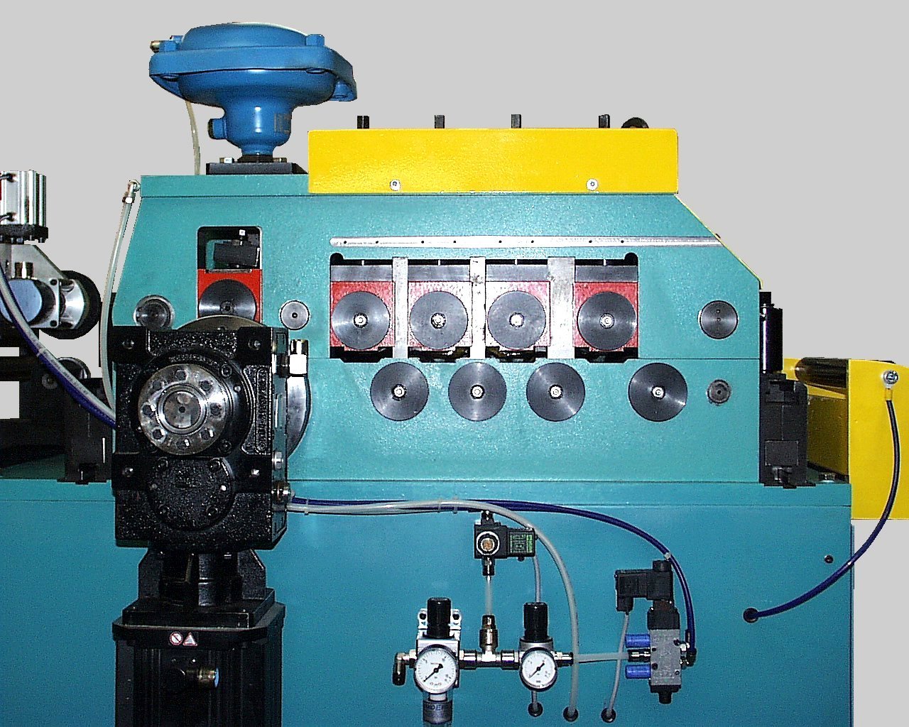 Die Zubehörpalette ist hierbei sehr groß. Allwalzenantrieb, Walzenabstützung bei großen Bandbreiten, Einführhilfe, Andrückarm, Meßrad als Schlupfkontrolle, Schlaufenschlagschutz, motorische Höhenverstellung des Richtkopfes zur Anpassung der Einlaufhöhe, ein verfahrbarer Vorschubrichtkopf zum Abholen des Coilanfangs und verschiedenste Steuerungen sind individuell möglich.