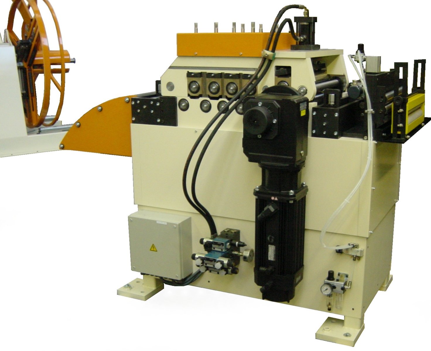 Vorschub- Bandvorschub- Richtmaschinen sind Kompaktmaschinen für beengte Räume, die ein Coilband Richten und dann direkt in einer programmierten Länge der Stanzmaschine oder Trennschere zuführen.