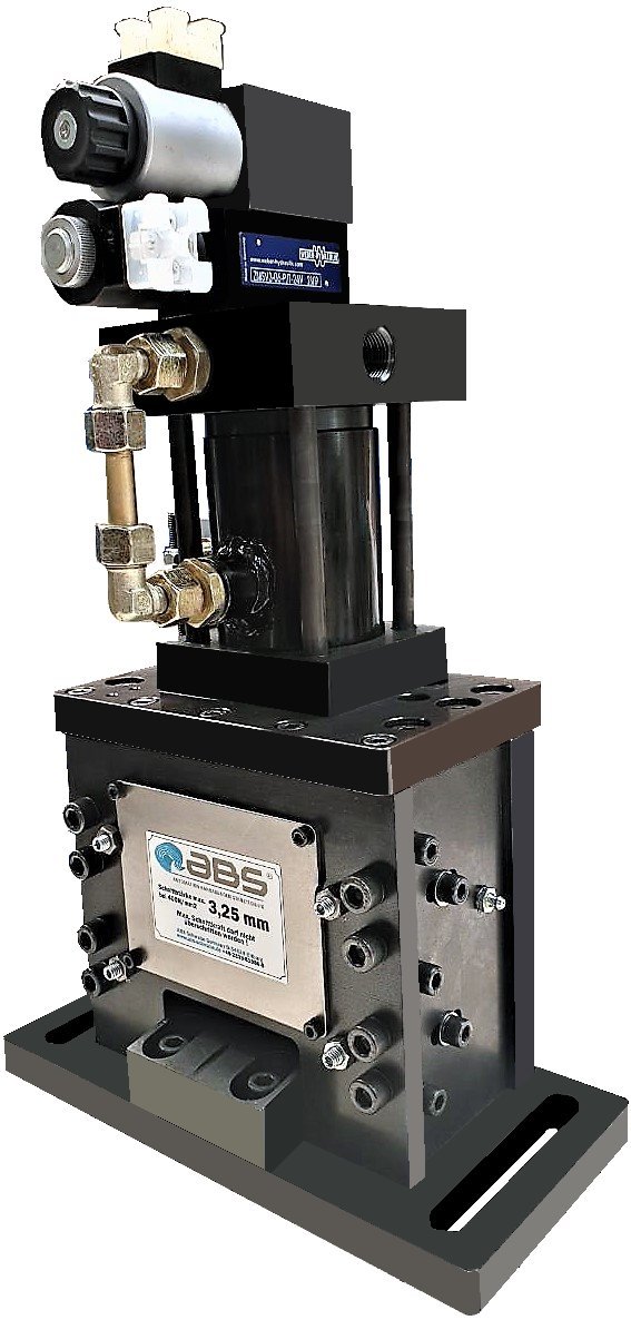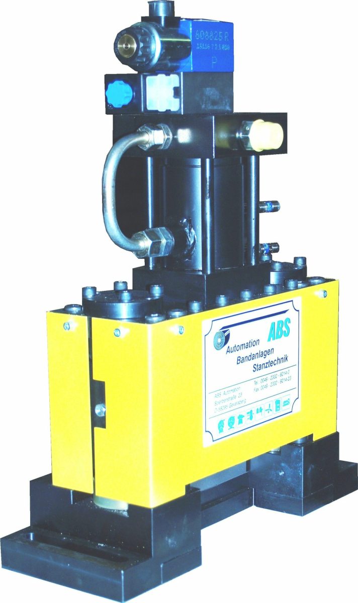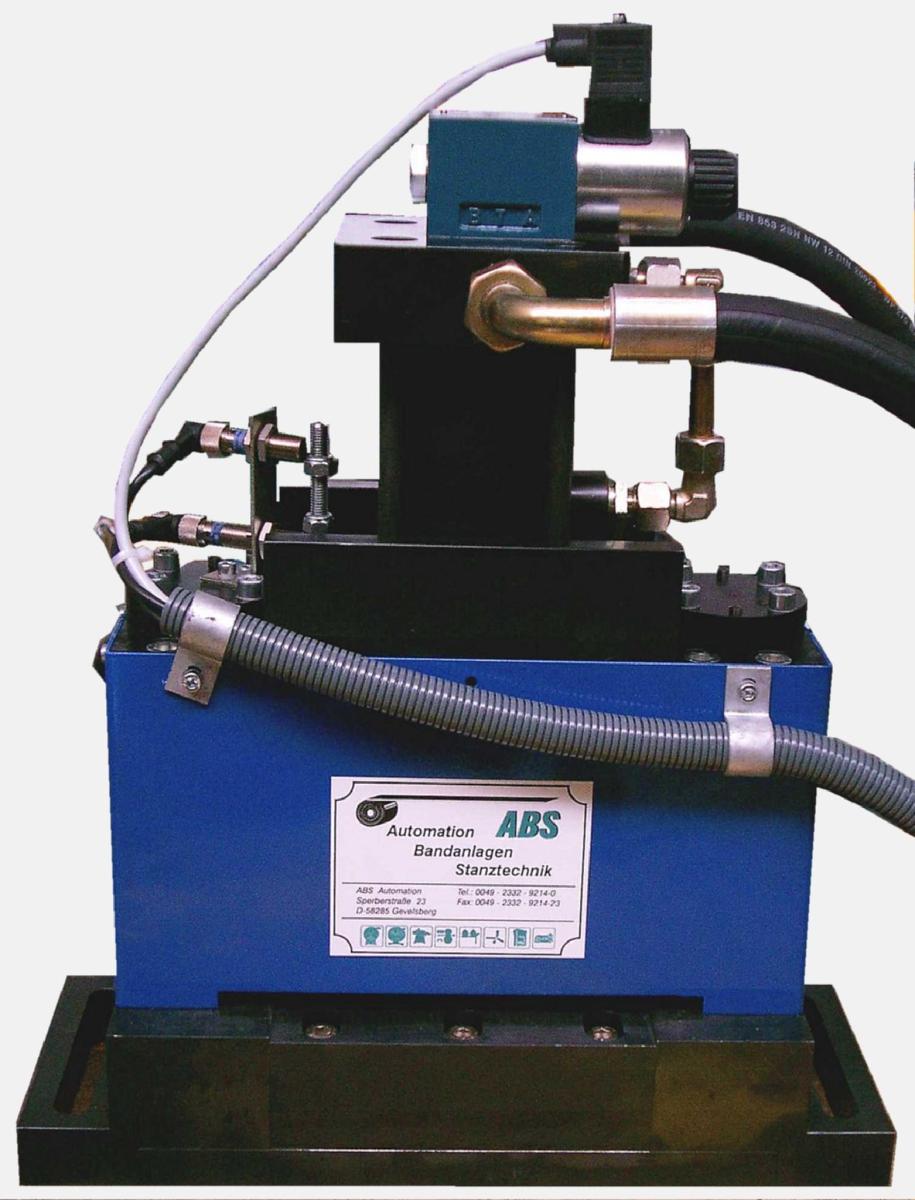 ABS Schwabe Trennscheren haben eigens entwickelte Hydraulikzylinder, die immer darauf aufgebaute Ventiltechnik haben, um die Temperatur auch der Metallbauteile über den Ölfluss abzuführen. Dafür wird ein Zwischenplattenventil eingesetzt, welches speziell für die Kühlung sorgt. Dies ermöglich eine sehr hohe Schnittgeschwindgkeit von bis zu 200 Hüben / min auch ohne besonderer Hydraulikaggregate. Die Speicherladetechnik sorgt für gleichbleiben Druck, auch schon beim 1. Schnitt nach Starten der Anlage. Dies kann jedoch nur gewährleistet werden, wen auch das Hydroaggregat sowie die elektrische Steuerung von ABS Schwabe verwendet wird. Diese Zylindersysteme gibt es in 36, 50, 63, 80 und 100 mm Durchmesser.