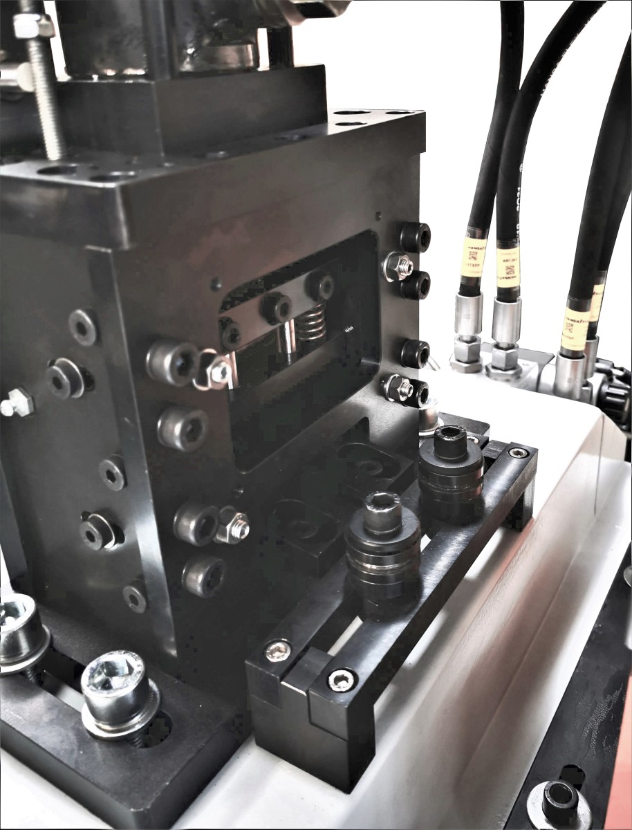 Wir haben eigens entwickelte Berechnungsprogramme für Schnitt- und Hydraulikleistung. Die Scheren haben ab 75 mm Bandbreite eine Dachschnitttechnik, welche die Geschwindigkeit verdoppelt, da nur der halbe Hub benötigt wird. Auch wird hier ein Wegkippen des Messerbalken verhindert, da beide Messer gleichzeitig schneiden. Auch das Material wird gerade gehalten ohne Drall.