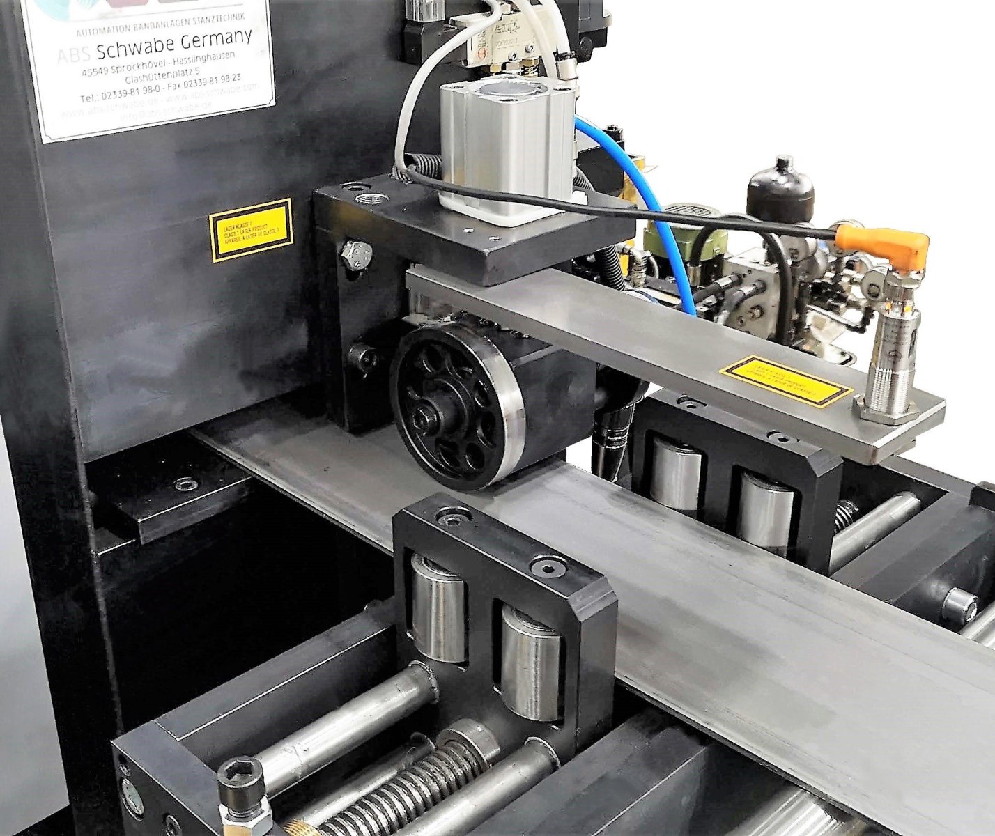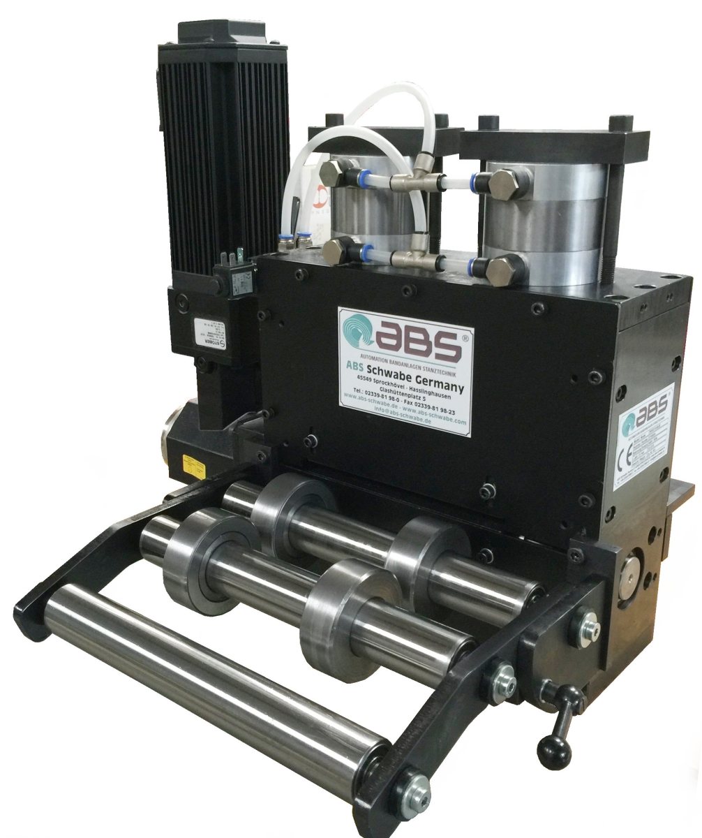 Walzenvorschübe ziehen Coilmaterialien durch Richtgeräte oder aus Bandschlaufen und fördern das Material längengenau positioniert in ein Stanzwerkzeug oder zum Querteilen in eine Trennschere. Sie dienen dazu, eine gleichmäßige Zuführung des Materials zu gewährleisten, während es durch die verschiedenen Arbeitsgänge wie Walzen, Biegen oder Schneiden geht und sind entscheidend für die Effizienz und Genauigkeit des Vorschubprozesses. Walzenvorschübe werden in verschiedenen Branchen eingesetzt, darunter in der Stanztechnik für die Automobilindustrie, Elektronikteile Herstellung und Bauwirtschaft.