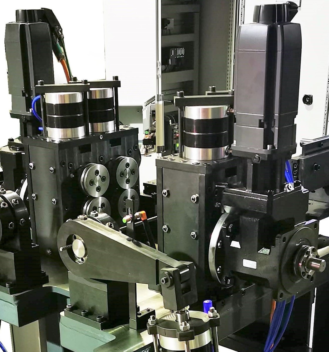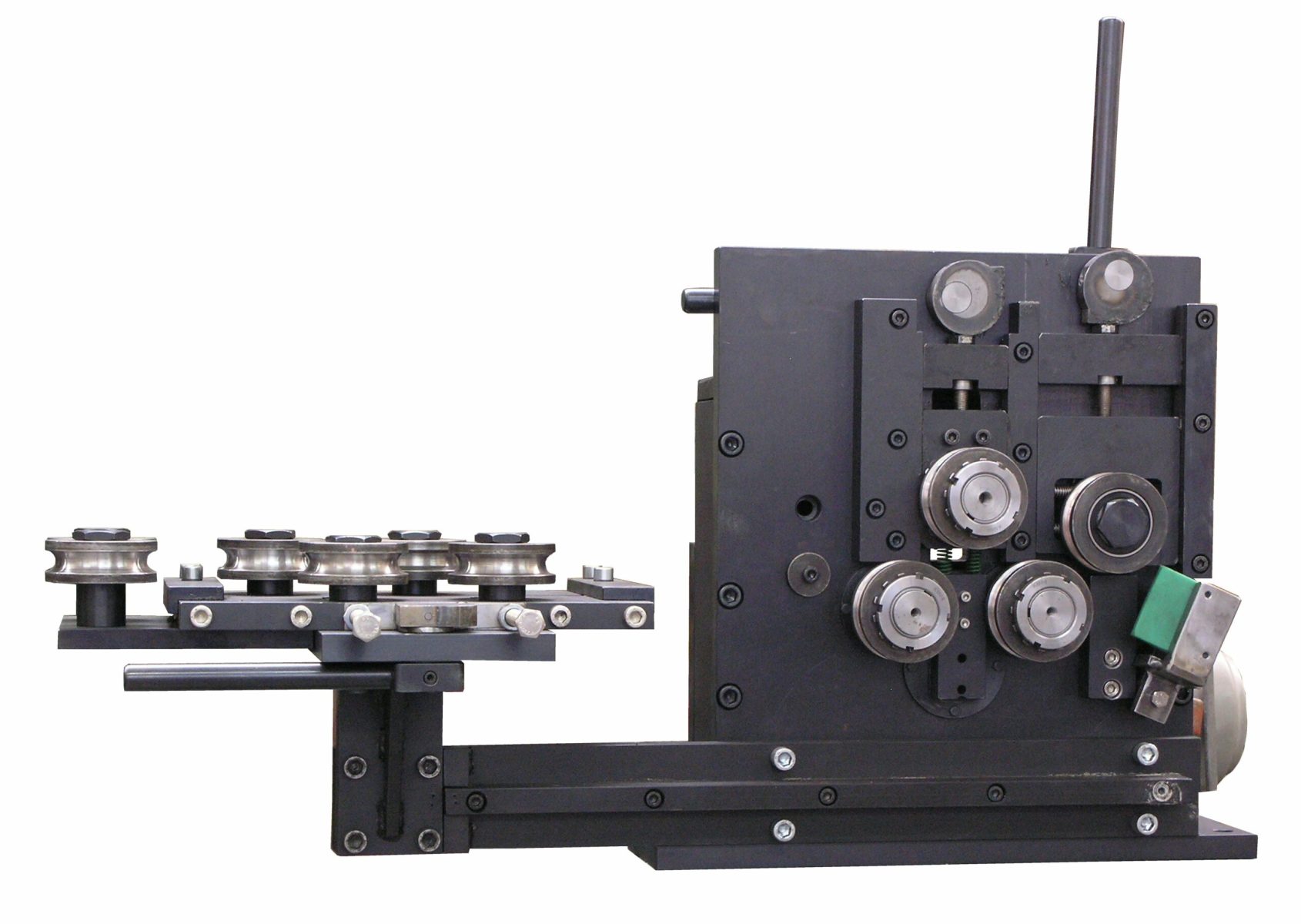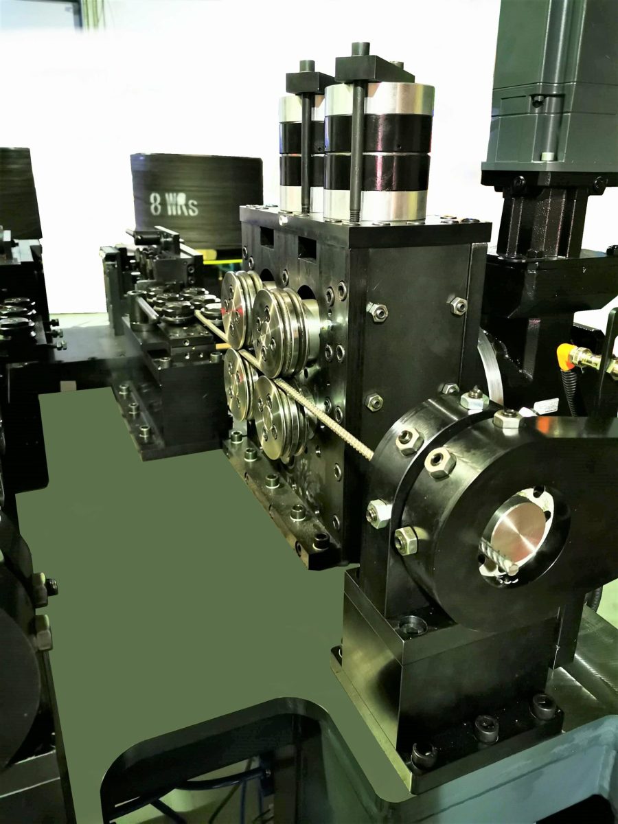 Rollenvorschübe ziehen Coilmaterialien, vorranig Runddraht oder Flachdraht durch Richtgeräte oder aus Bandschlaufen und fördern das Material längengenau positioniert in ein Werkzeug oder zum Querteilen in eine Trennschere. Rollenvorschübe gibt es in 2-fach oder 4-fach Rollenausführung sowie verschiedener Durchmesser.