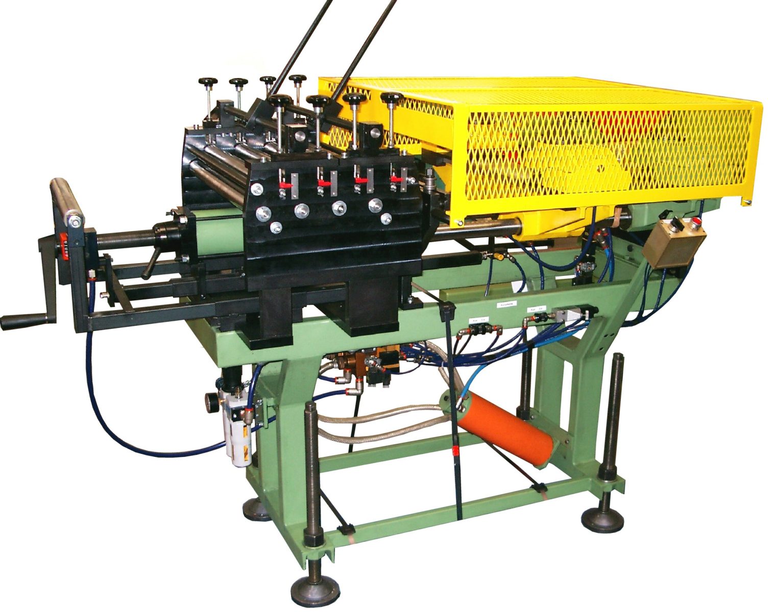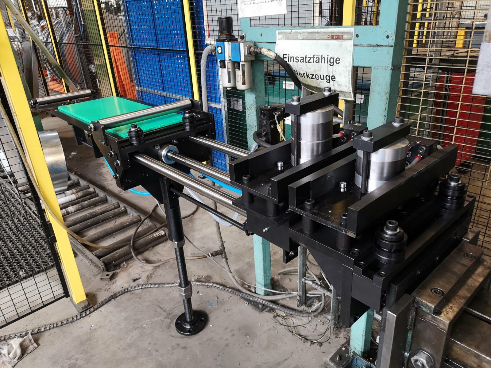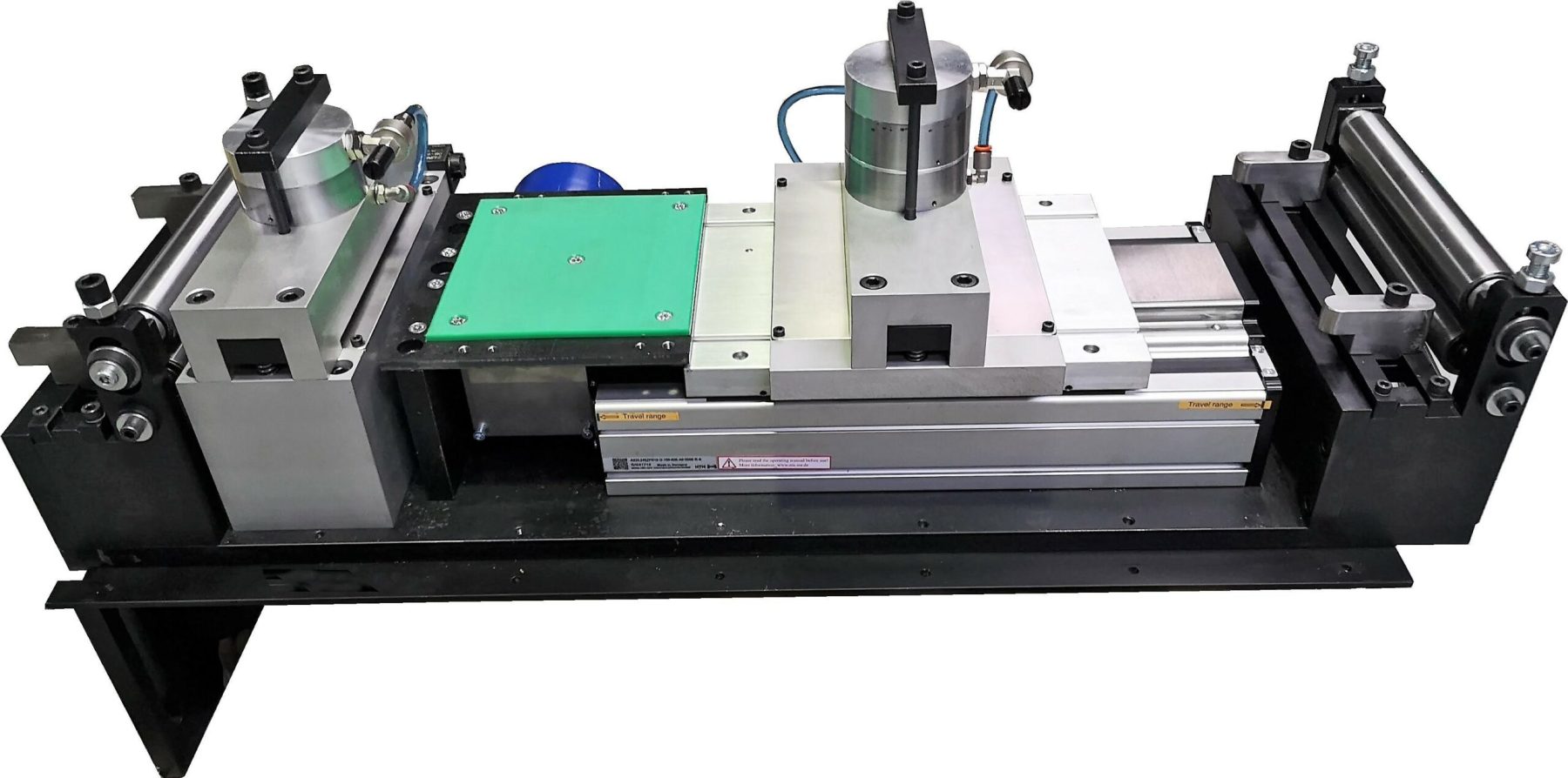 Zangenvorschübe Serie MODULAR in schwerer Ausführung sind Vorschubeinrichtungen, die ein Band- Draht- Profil oder Folienmaterial längen- und positionsgenau in eine Produktionsmaschine, vorranig ein Stanzwerkzeug oder zum Ablängen in eine Trennschere schieben.