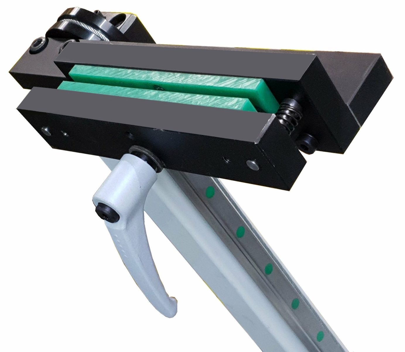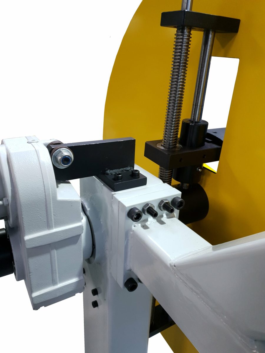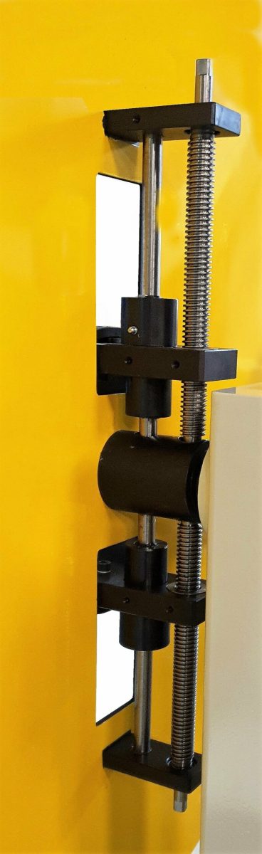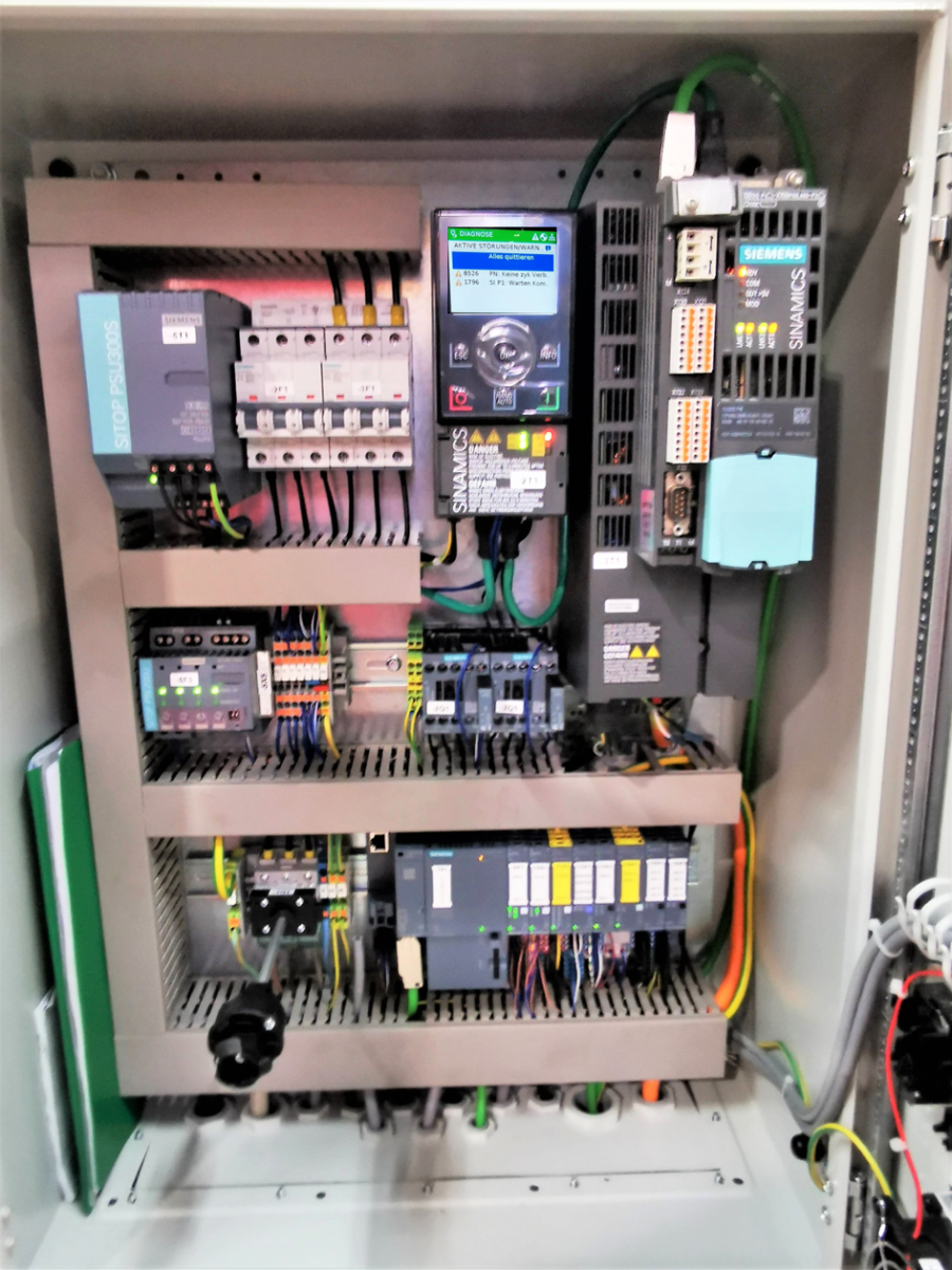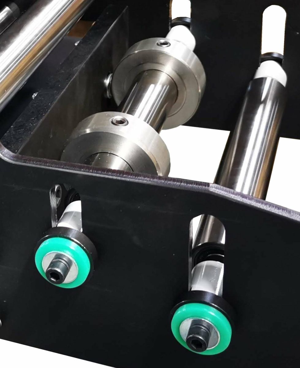 – Der Walzenvorschub hat eine Schwingkopftechnik für eine parallele Zustellung der Oberwalze auch bei außermittigem Fahren, die Oberwalze ist über Zahnräder mit angetrieben. Der Siemens-Servomotor ist eine High-Dynamik Ausführung mit sehr geringem Massenträgkeitsmoment für hohe dynamische Leistungen. Das Servo-Planetengetriebe ist ein wartungsfreies Präzisisongetriebe für sehr genaue Positionierungen.
