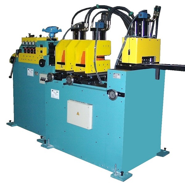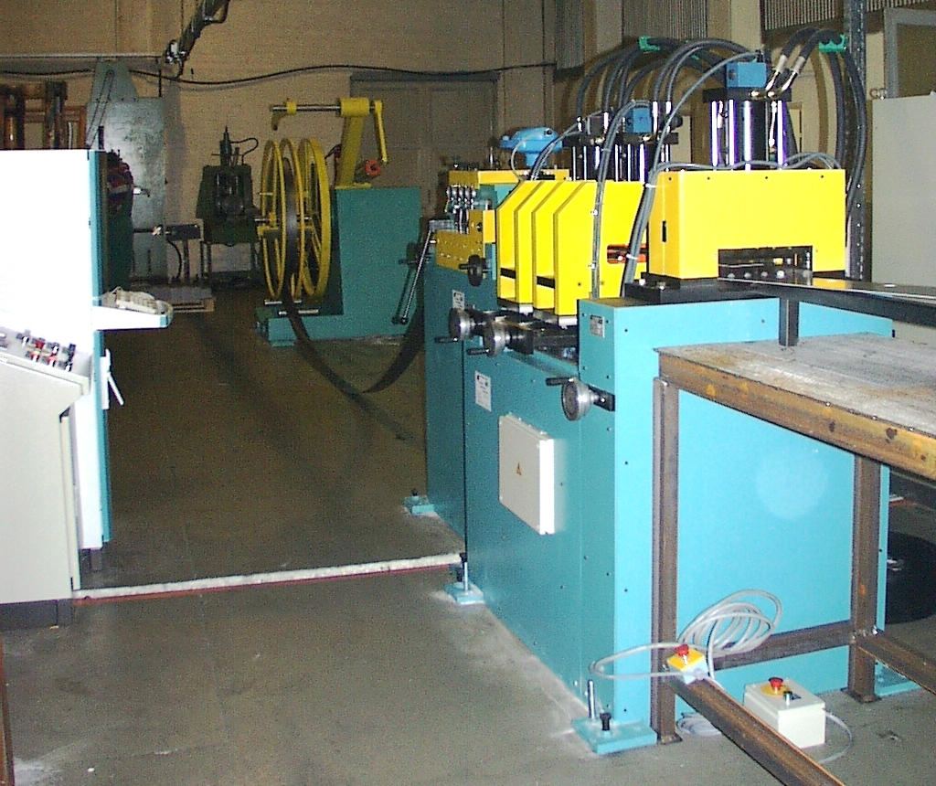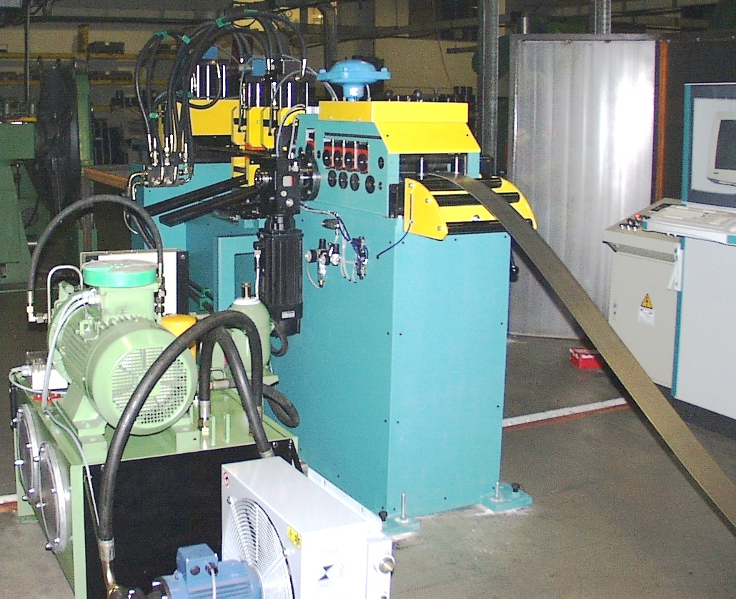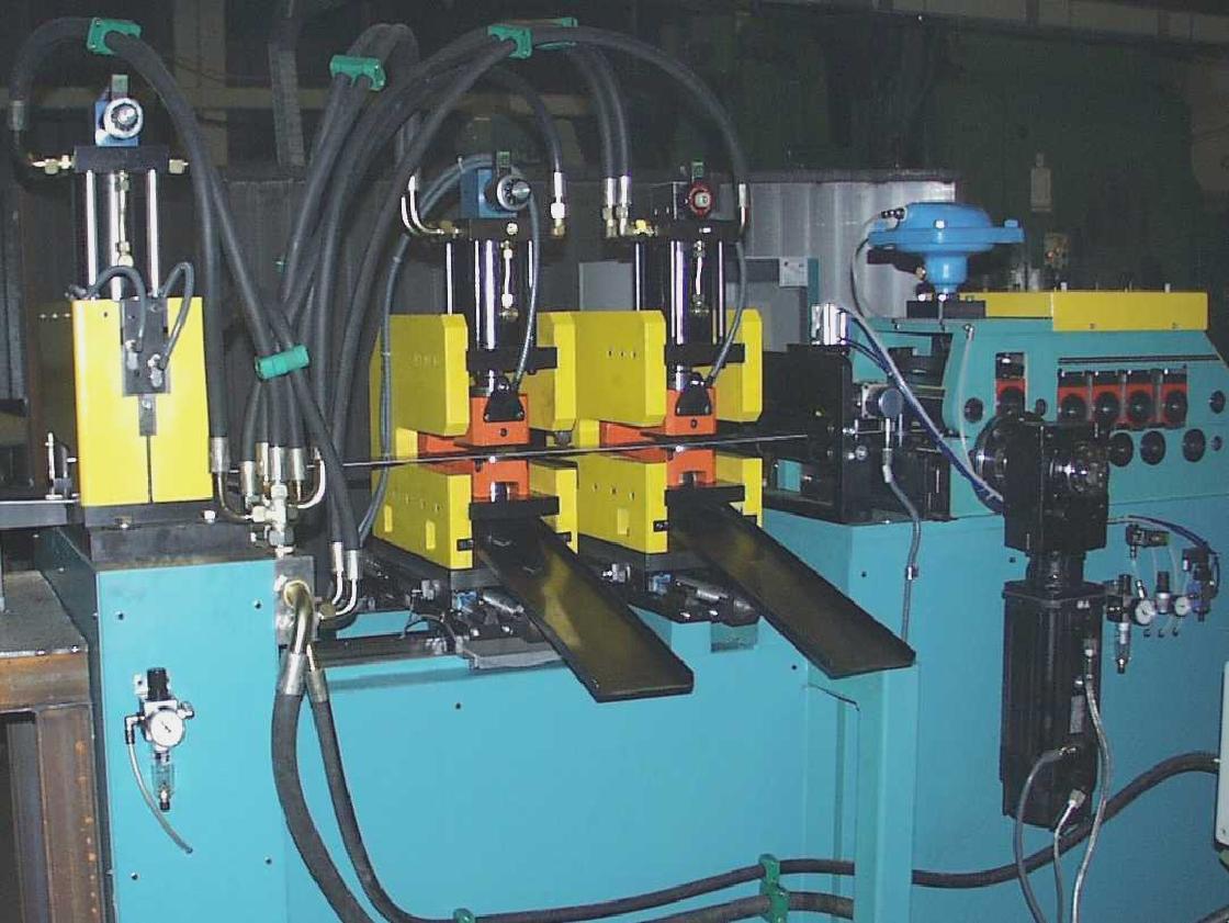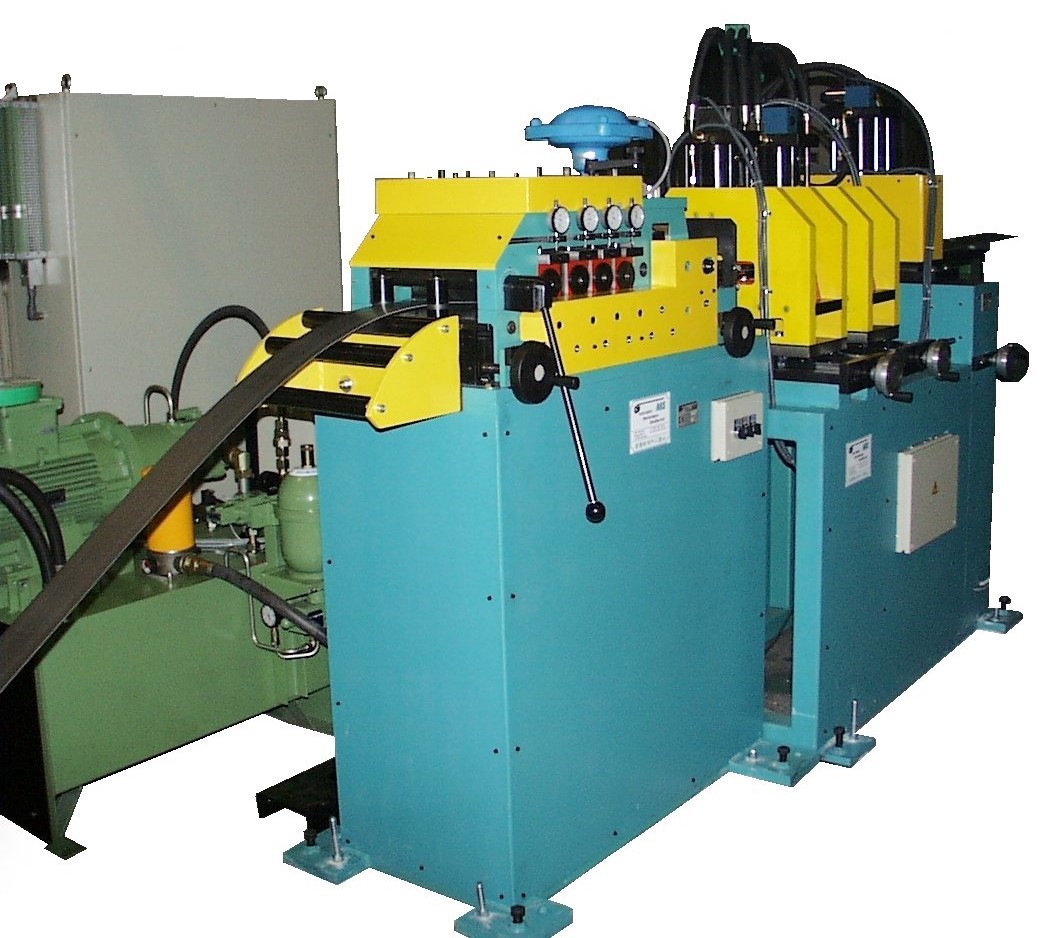 Diese Querteilanlage ist speziell darauf ausgelegt, Metallbandstreifen mit Lochstanzen zu bearbeiten und gleichzeitig das Coilbandmaterial präzise zu richten und Bandstreifen in einer genauen Länge zu schneiden. Dabei erfolgt zuerst das Richten und genaue Vorschieben in einer kombinierten Vorschubrichtmaschine mit anschließendem Stanzen von Löchern in das Material gefolgt von Abschneiden mit einer hydraulischen Trennschere. Diese Prozesse ermöglichen die Herstellung von präzisen Bauteilen oder Produkten für verschiedene industrielle Anwendungen, hier Herstellung von Verschlußstopfen für Pipeline-Rohre.