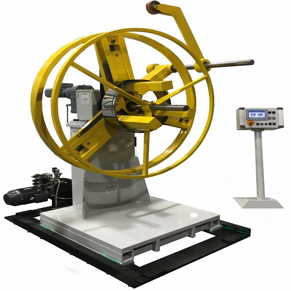 Liegende Haspel / Palettenhaspel / Horizontal Abwickler werden zum Ab- Aufwickeln für Drahtcoils auf Kronenstöcken, liegenden Spulen, Trommeln und Coils verwendet.