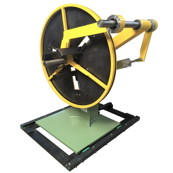 Ein Ab-Aufwickler / Haspel mit 4-Backen Gelenkspreizung ist eine spezielle Art von Haspelanlage, die verwendet wird, um Bandmaterial kontrolliert von einer Spule abzuwickeln.
